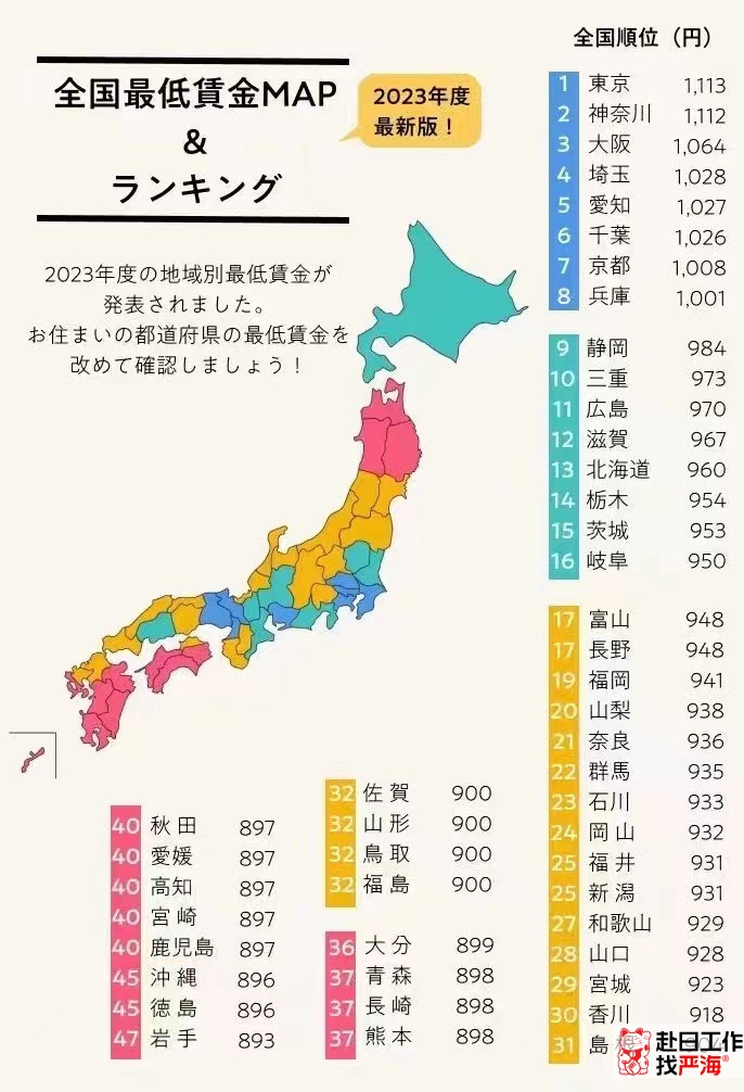 日本最低小時工資約為900日元,折合約為45元人民幣。